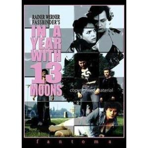 阿敏最后在他们共同居住的公寓服药自杀,直到尸体开始腐烂才被管理人员发现,而法斯宾德拒绝参加他的葬礼。他还是有些触动,在阿敏死后,拍了《一年里的十三个月亮》送给这位曾经的爱人。主人公艾尔维拉的童年和阿敏一样,被母亲抛弃,在修道院长大,本来是一个聪明的好孩子,有一对仁慈的夫妇要收养他,但她的母亲不想让丈夫知道私生子的事情,不答应他被收养。后来他变成了一个小偷、坏孩子,对一切事情都没兴趣。其实,这部电影不过是对阿敏自作自受的惋惜吧了。艾尔维拉因为爱人的一句戏言,跑去卡萨布兰卡做了变性手术,而事实上,他并没有得到爱的回报。他被当做变态被人殴打,同居的男友厌倦他后弃他而去。电影前半部分里有长达十分钟的屠杀牛的镜头,鲜血淋漓的屠宰场面,伴随着艾尔维拉声嘶力竭地高念歌德的诗歌,让人视觉和听觉都充斥着尖锐的剥裂感。结尾处他的妻子、女儿、记者发现苗头不对来家寻他,他的尸体瘫软在床上,大家神情沉重,背景的声音是他以前对记者的一段访谈,里面是谈他变性后的感情及人生感受,从谈话听来,那时他似乎还有信心去面对人生。僵硬的尸体和生前鲜活的声音并置在一起,两种时空交织在一起,更加剧了悲剧性。